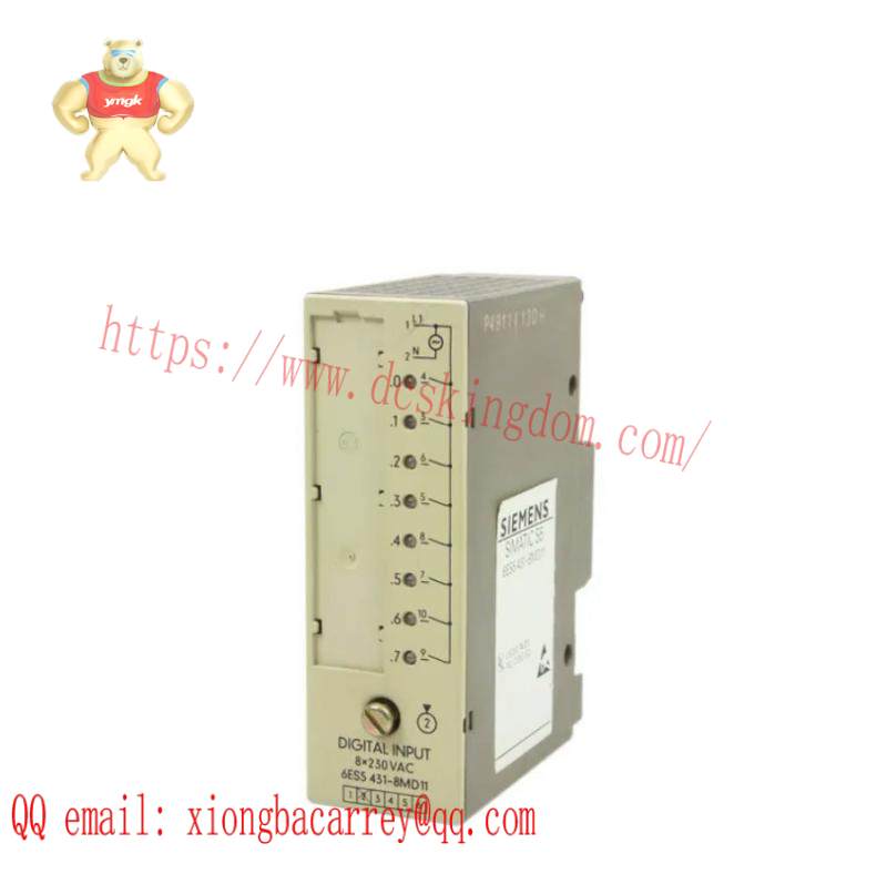 The SIEMENS 6ES5431-8MD11 Digital Input Module is a versatile component designed to optimize industrial automation processes. It boasts an impressive array of 8 isolated digital inputs, each capable of handling 24 V DC power supply, ensuring reliable signal acquisition under diverse industrial conditions.